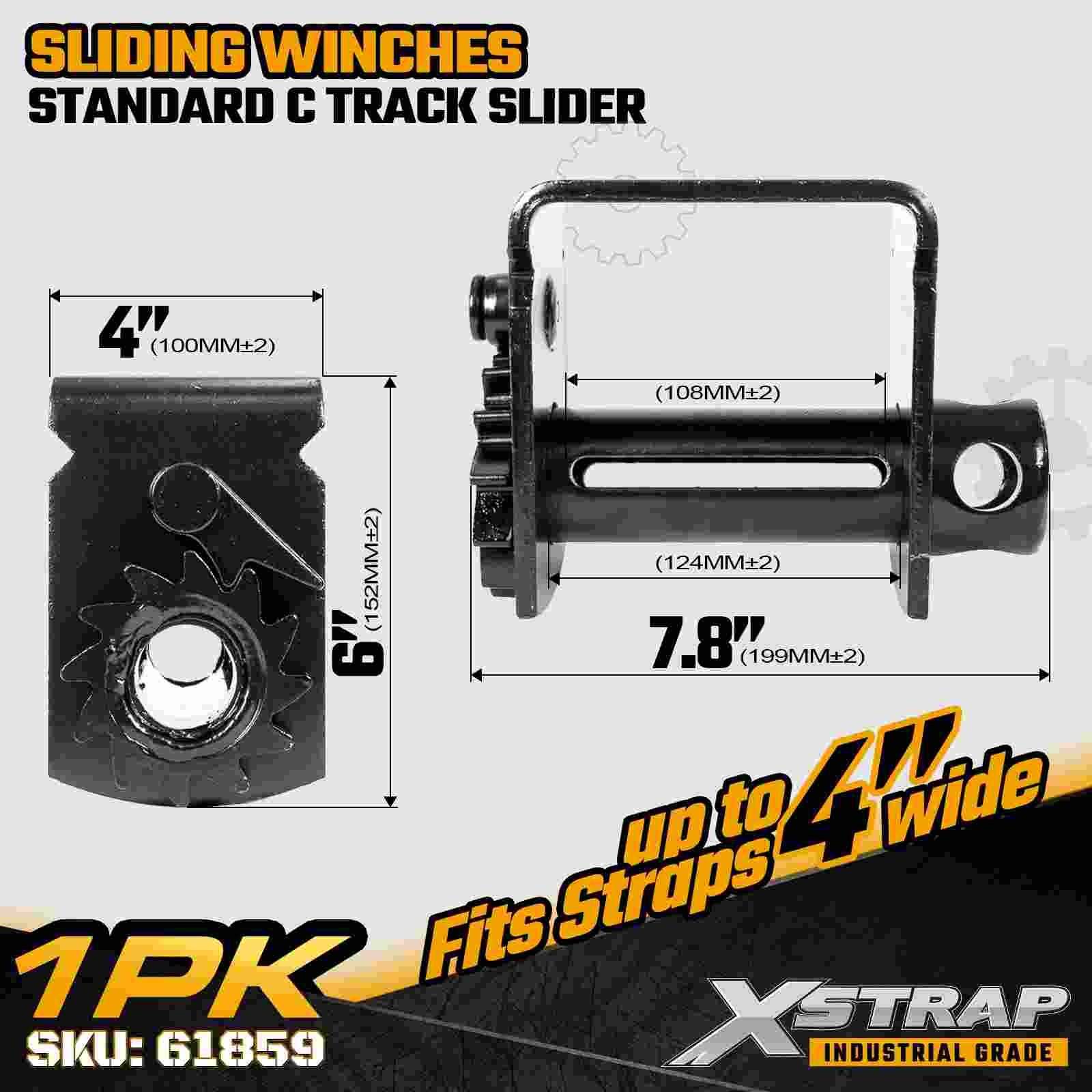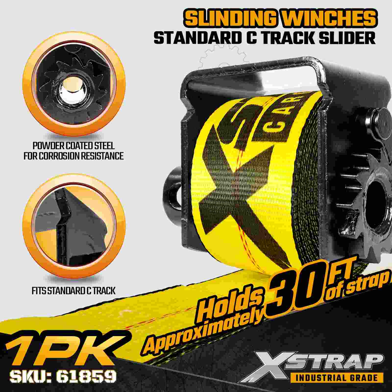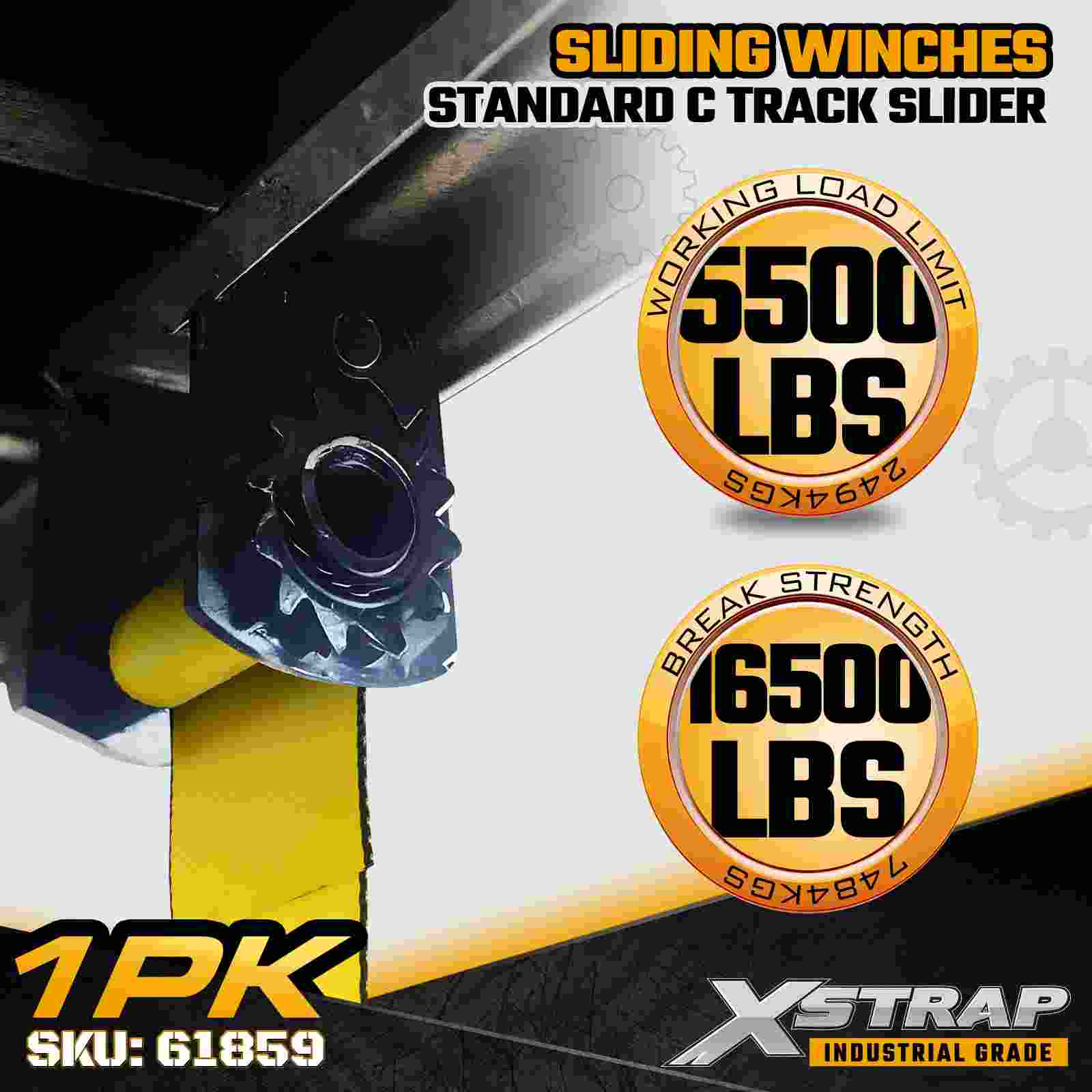 The Xstrap 61859 Sliding Winch is designed for operators who need a fully adjustable tie down system along a C-track rail. Built for flexibility and heavy duty performance, this sliding winch allows quick repositioning to match different cargo sizes and loading patterns. Constructed with a reinforced 7mm steel frame and rated at 5,500 lbs WLL and 16,500 lbs Break Strength, it provides dependable load control for flatbeds, step decks, and industrial freight applications.