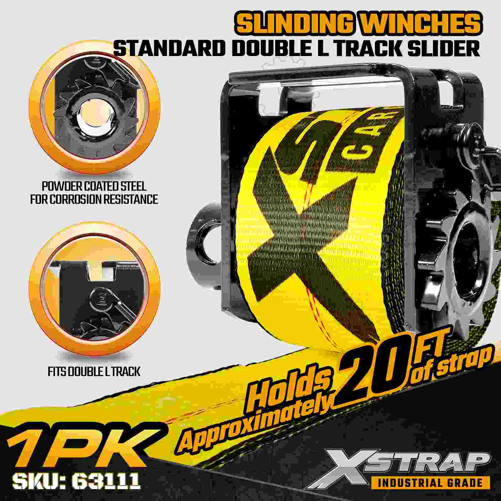 The Xstrap 63111 Side-Mount Low Profile Sliding Winch is designed for operators who need a portable, adjustable tie-down solution that mounts securely along a C-track rail. Featuring a compact low-profile structure and a dual set-screw locking system, this winch offers flexible positioning without permanent installation. Built to support heavy-duty freight with a 5,500 lbs Working Load Limit and 16,500 lbs Break Strength, it is ideal for machinery, steel loads, palletized freight, and other industrial cargo applications.